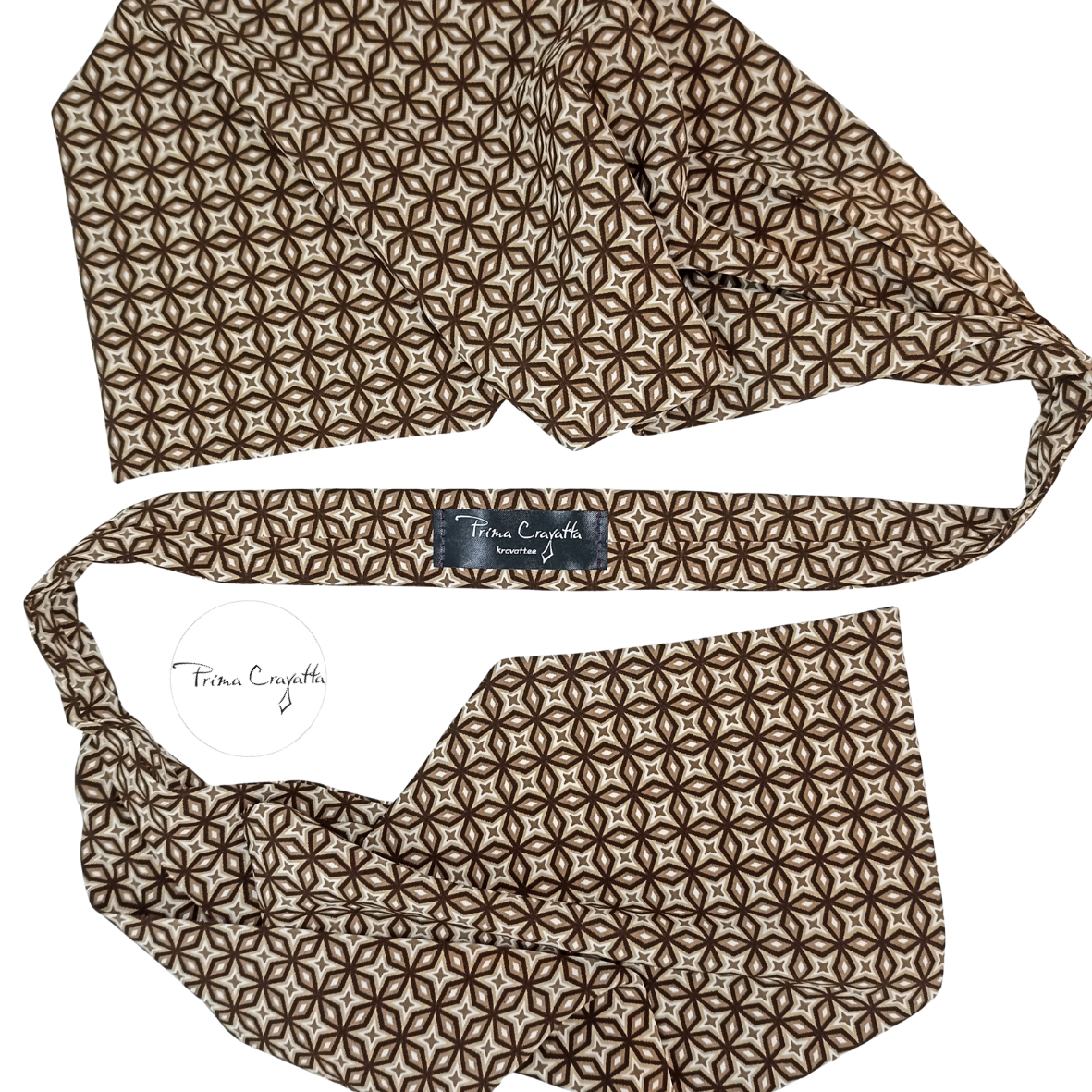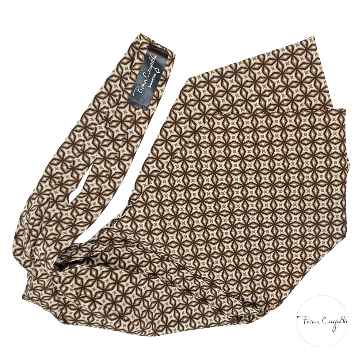 Retro ruulib! Pehmest pruuni- ja valgekirjust retromustriga polüesterkangast pidulik lips Lionel Logue
