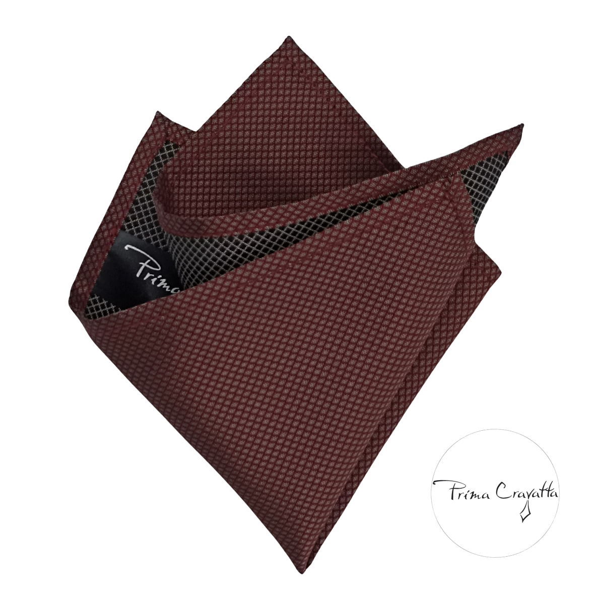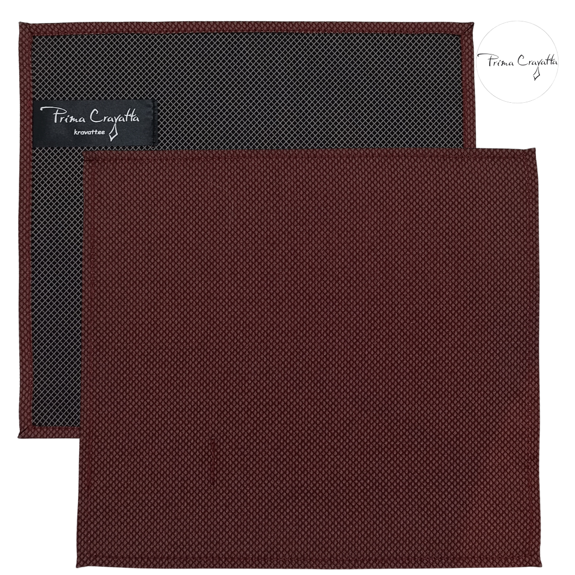 Bordoopunane Prima Cravatta pintsaku taskurätik Mikael on õmmeldud tugevamast voldituna taskus hästi kujuhoidvast siidisegusest kangast. Vali, kumba pidi kannad – ühelt poolt pruun peene punase ruudustikuga, teiselt poolt must hõbedase ruudustikuga.